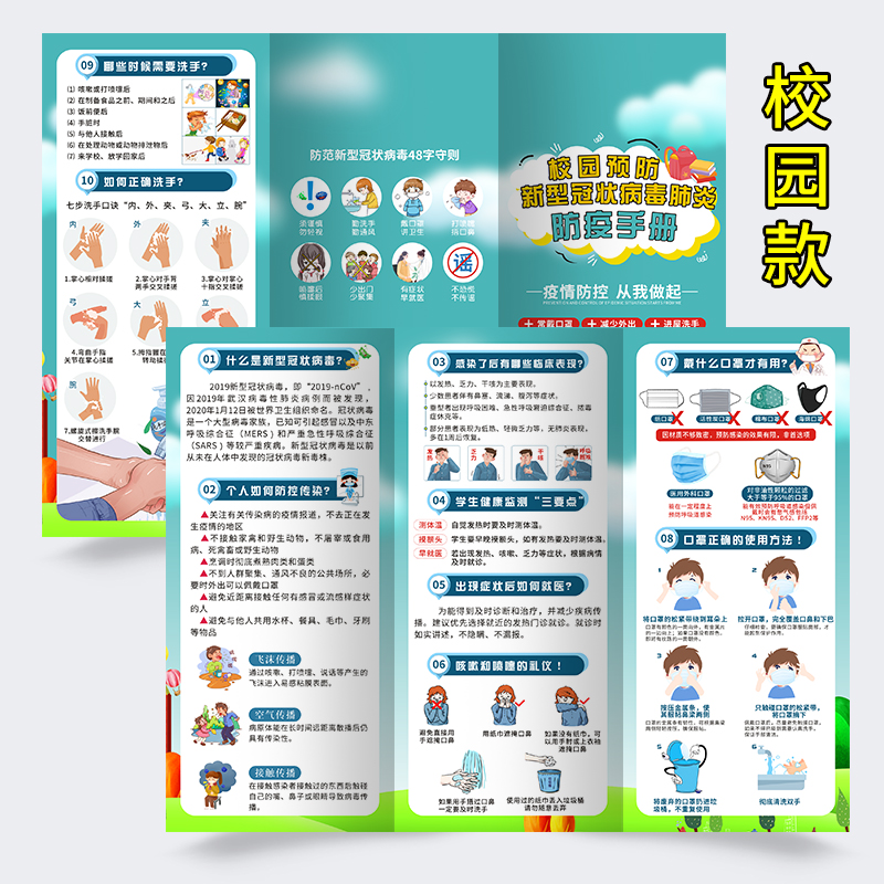 Campus Epidemic Prevention Publicity Single Folding Page Kindergarten School School Prevention And Control Outbreak Handbook Prevention New Crown Pneumonia Virus High Junior College Health Health Knowledge Guide School Students Return To School