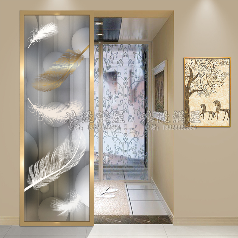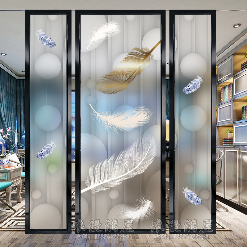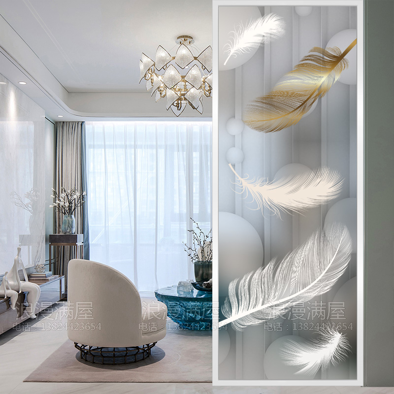 Customized art glass living room partition wall decorative screen double-sided light luxury style feather entry entrance frosted light transmission