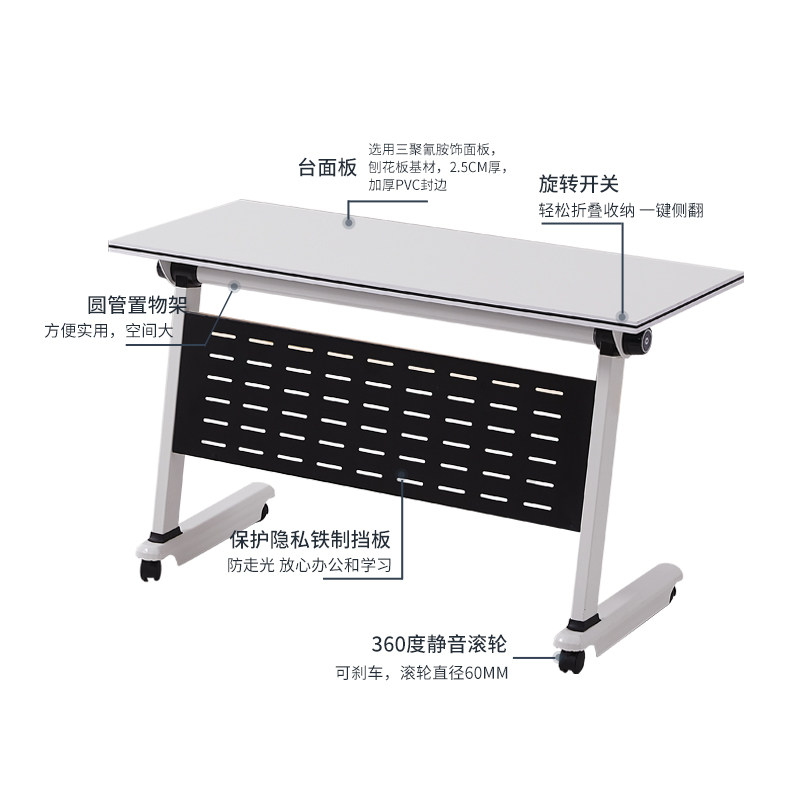 Office folding training table multi-functional combination stitching conference table long bar reading table training institution desk pulley