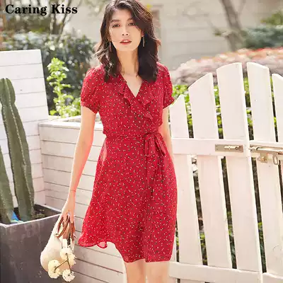 Caring Kiss ruffle French retro wrap waist slim temperament tea break skirt new dress female