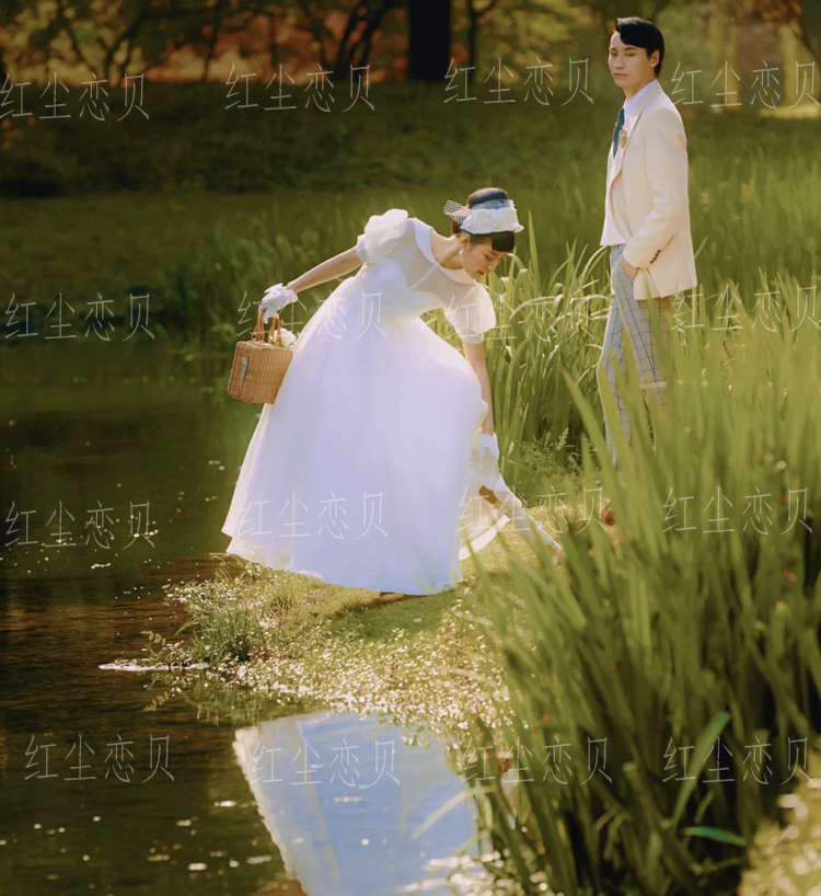 French couple photo dress photography Mori travel photo photo short-sleeved veil retro wedding photo studio theme clothing