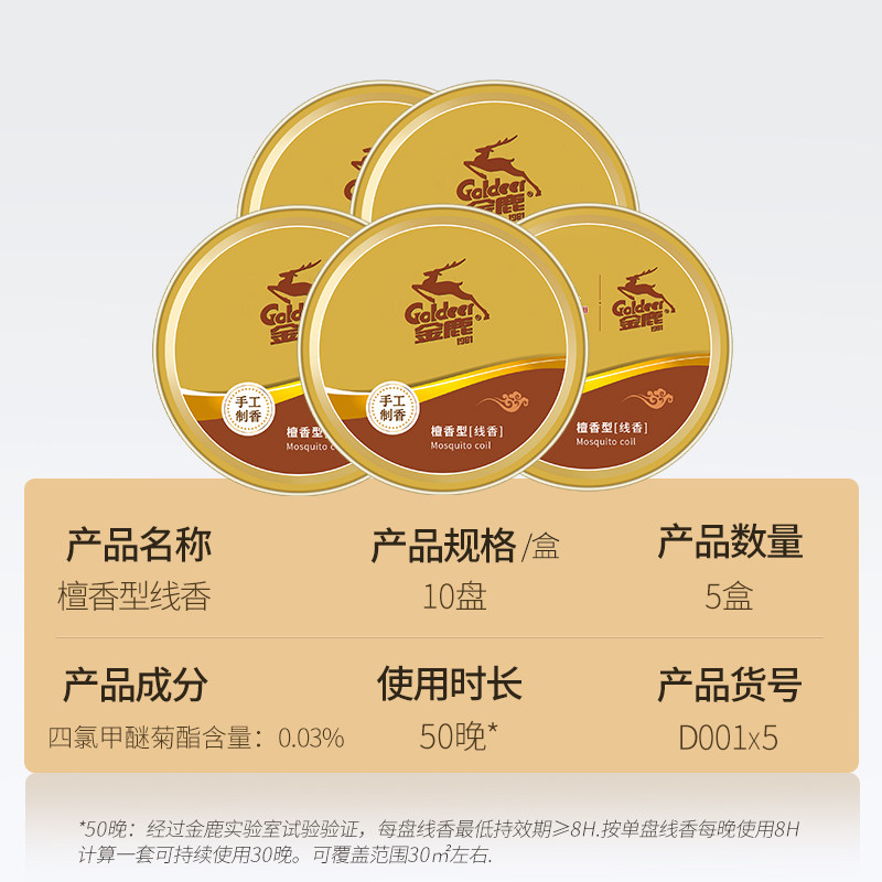 Golden deer dressing room mosquito incense sandalwood mosquito repellent toilet with deodorant and deodorant incense household indoor mosquito-repellent incense 50 trays