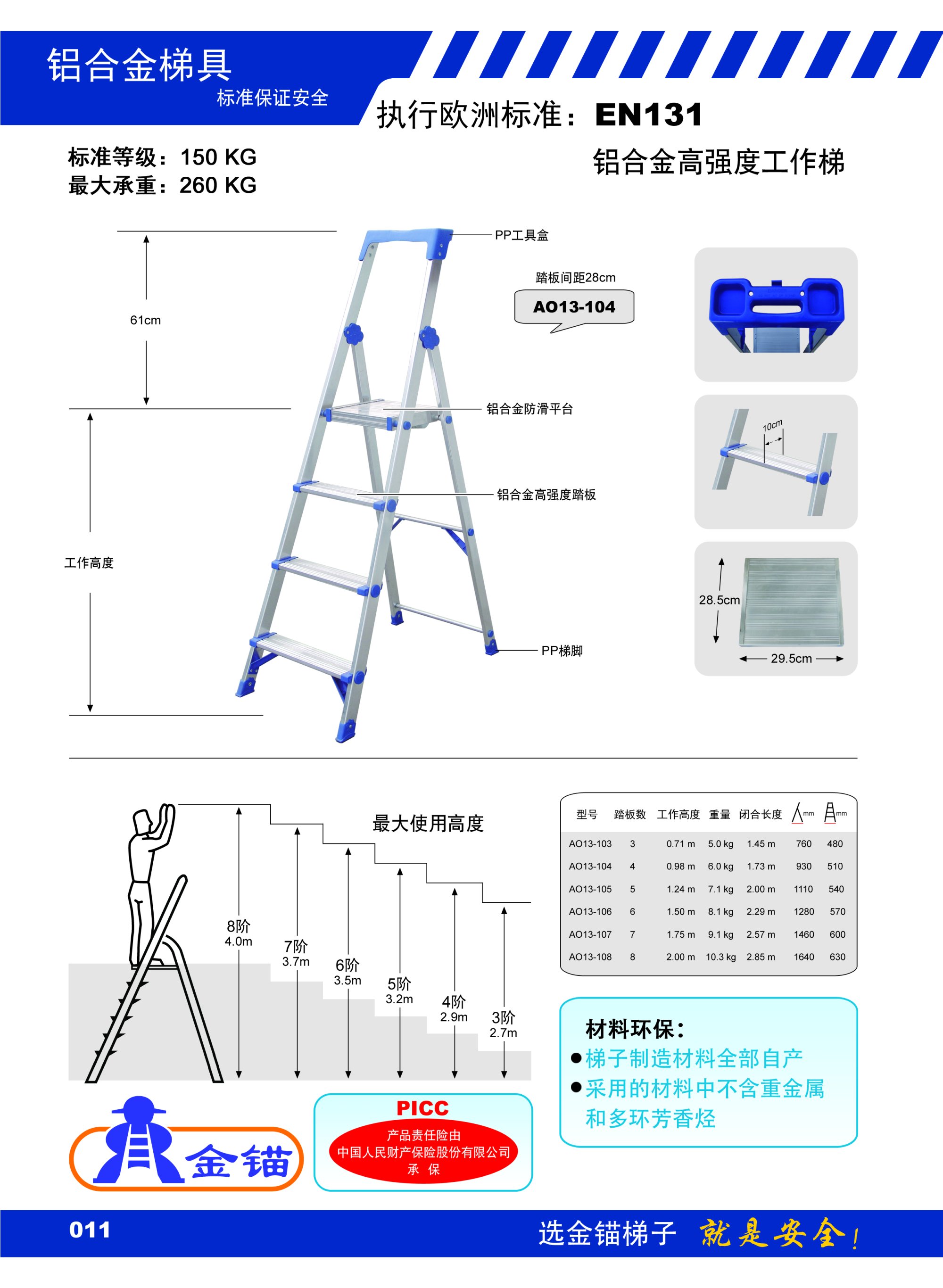 Gold Anchor High Strength Aluminum Alloy Working Ladder A013-103A013-104A013-105 Gold Anchor Aluminum Alloy Ladder