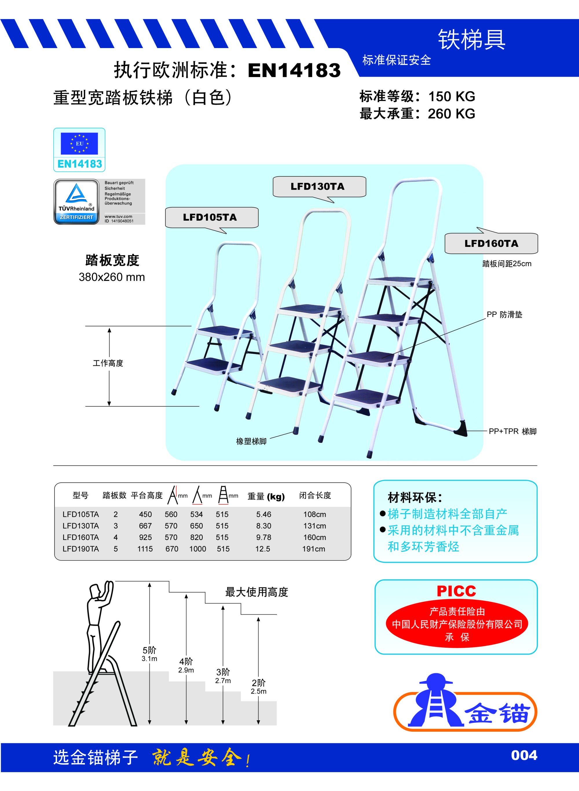 Heavy Duty Wide Pedal Ladder LFD105TA LFD130TA LFD160TA LFD190TA Gold Anchor Ladder