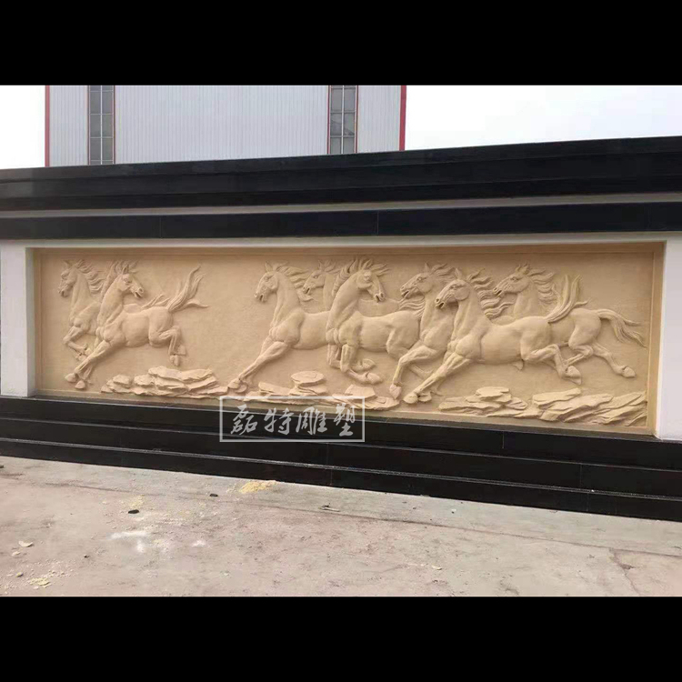 Sand rock glass fiber sculpture exterior wall Chinese eight horses relief mural Office hotel lobby sand sculpture background wall
