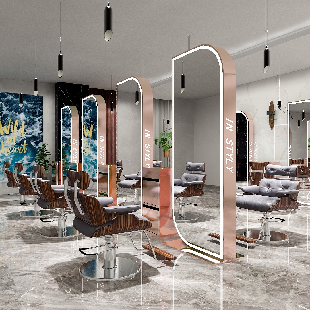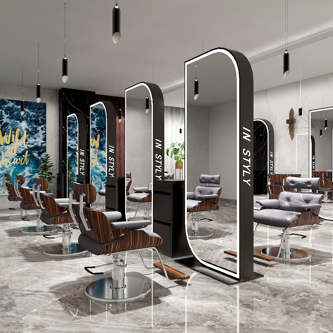 LED intelligent touch-control hairdressing shop mirror stand floor cut and hair perching mirror hairdressshop online red hair salon special double face