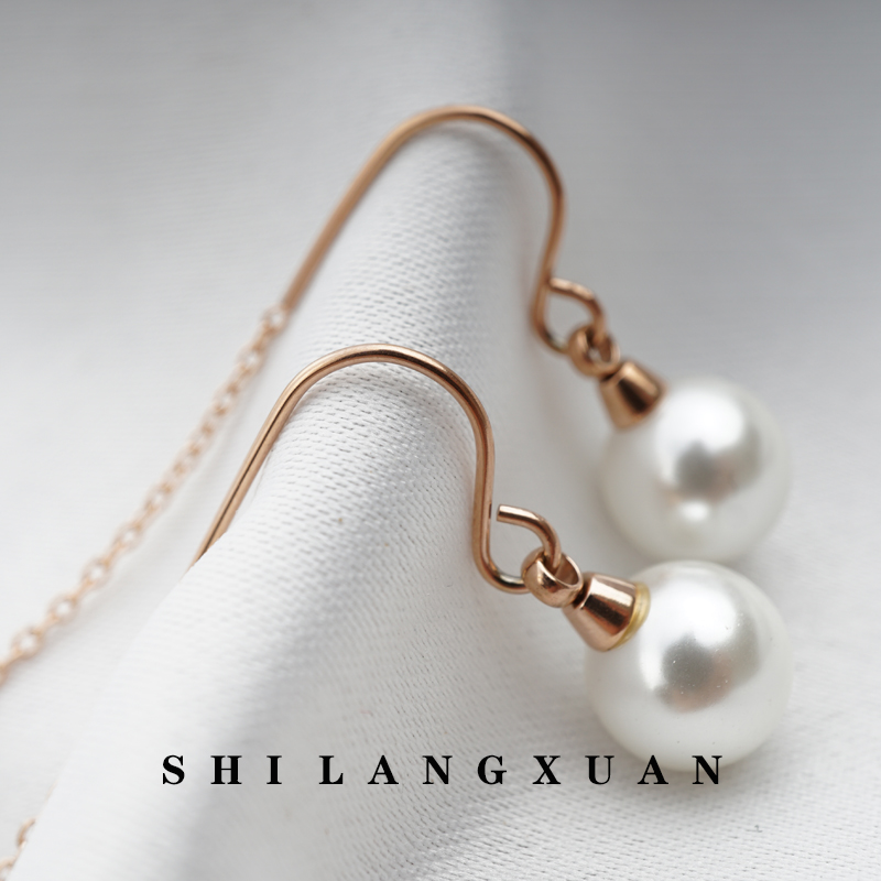 European and American Titanium Steel Lady 18K Rose Gold Long Version Pearl Earrings Earrings Earrings Stream Suear Fashion Accessories iXxhY7