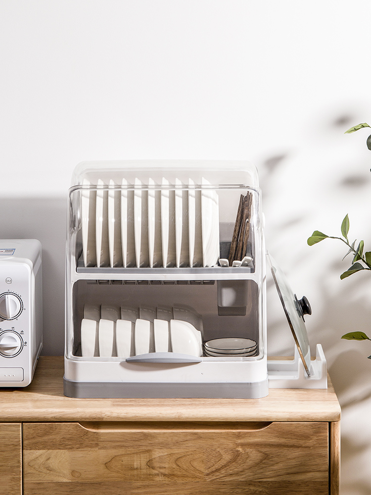 Blue and white bowls Drain Basket-Upgrade with chopping board Grey white Dish Drain Basket-Upgrade with Chopping Board Generation Magnetic door-Blue and white-Double bilayer-Nordic blue double-decker-North