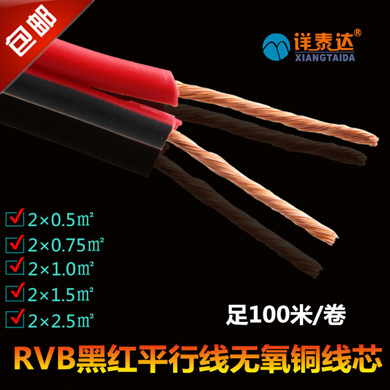 Pure copper RVB red black flat line 2 core 0 5 1 0 square 2 5 monitor power cord led parallel wire 100 m