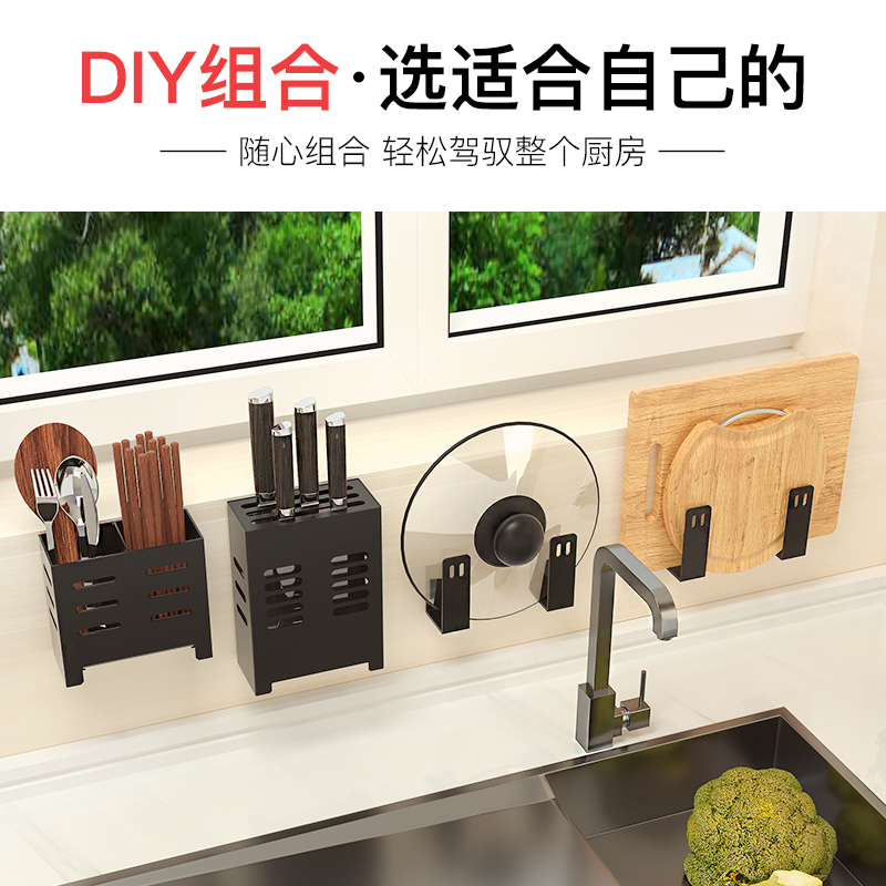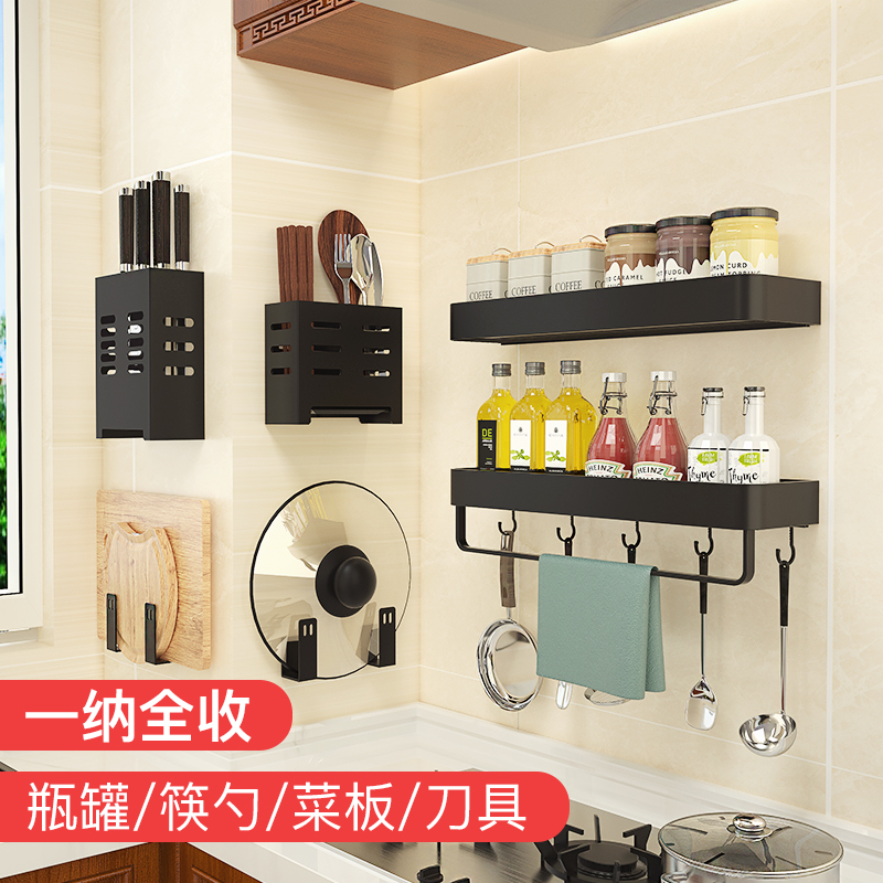 Kitchen rack free punching wall-mounted household seasoning supplies knife rack rack multi-functional storage rack