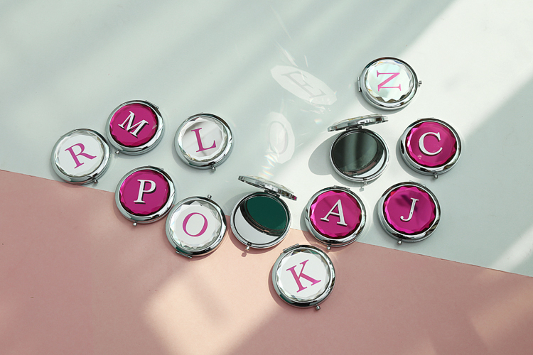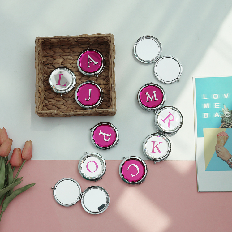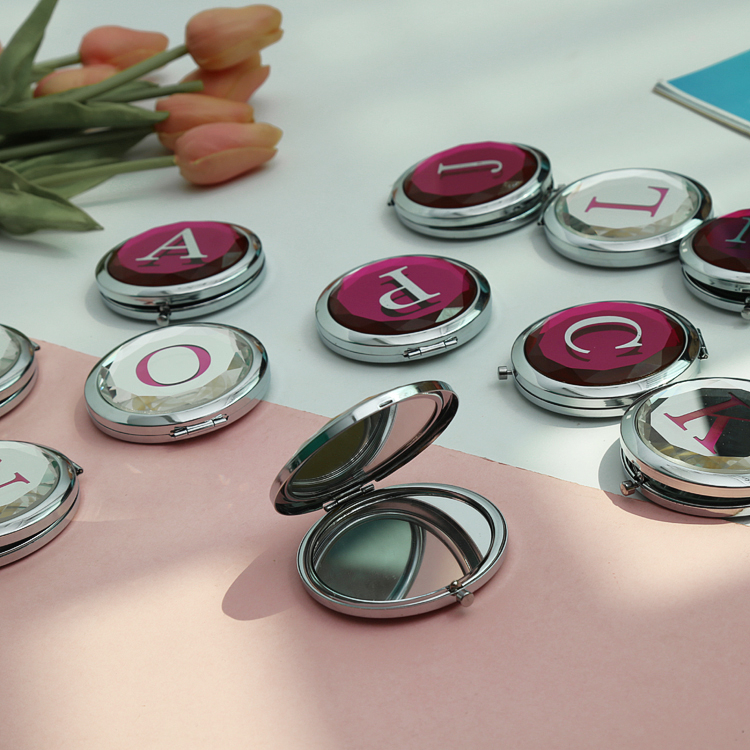 Crystal stereoscopy cosmetic mirror English letter makeup mirror Double face portable Korean mini-cosmetic mirror