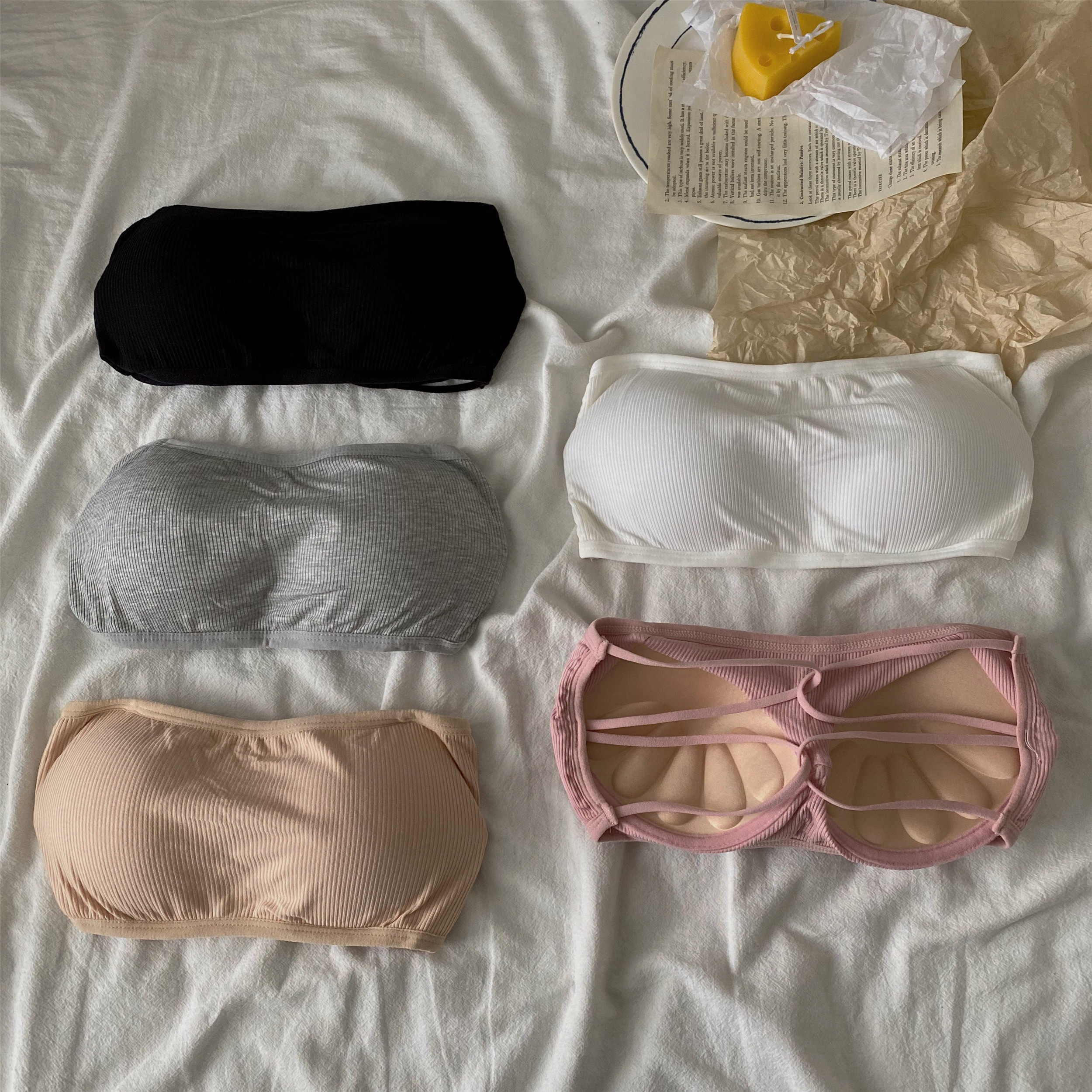 Seamless vest with strapless tube top underwear women's bra summer small chest gathered wrap chest beautiful back top new