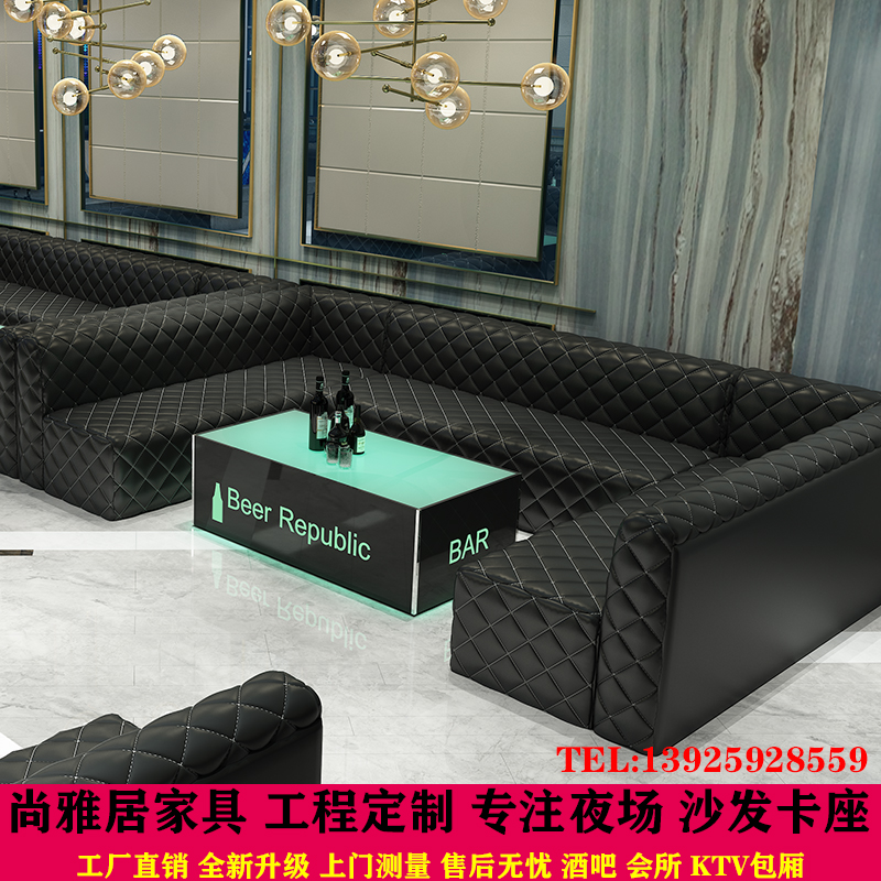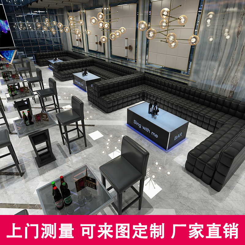 Custom KTV Nightclub Bag Room Sofa Bar Clear Bar Clear Music Dining Room U Type Sofa Luminous Tea Table Combo