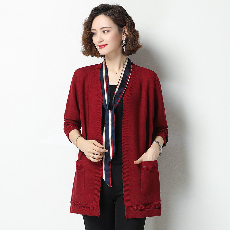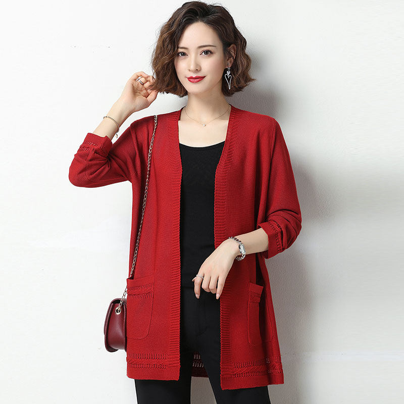 Hengyuanxiang middle-aged mother wear knitted cardigan women's mid-length thin summer loose large size mulberry silk shawl