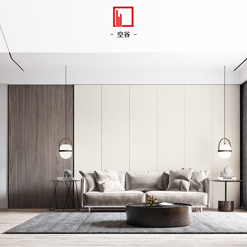 Empty Valley Custom Home Background Wall 2021 Finishes Board Hard Bag Living-room Sofa Modern Background Wall Minima Light Extravaganza