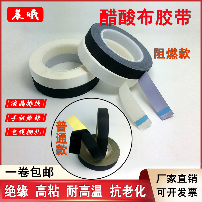 Morning Dawn Acetate Tape Black Flame Retardant Electrical Tape Repair Electrical Appliances Mobile Phone LCD Screen Headset Data Cable Car Harness Fixed Bandage Insulation High Temperature Flame Retardant Acetate Tape