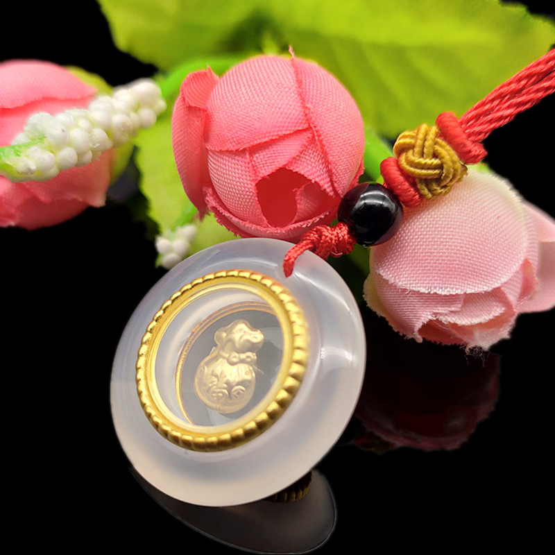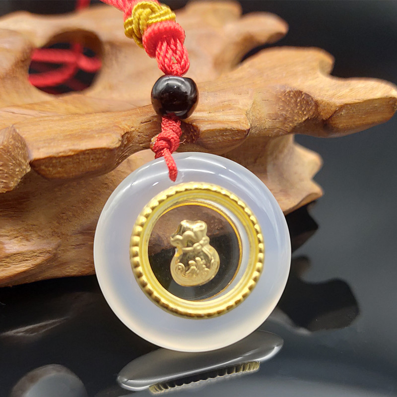 Gold inlaid jade time to run blessing bag pendant gift chalcedony safe buckle money bag chain children's baby birthday gift