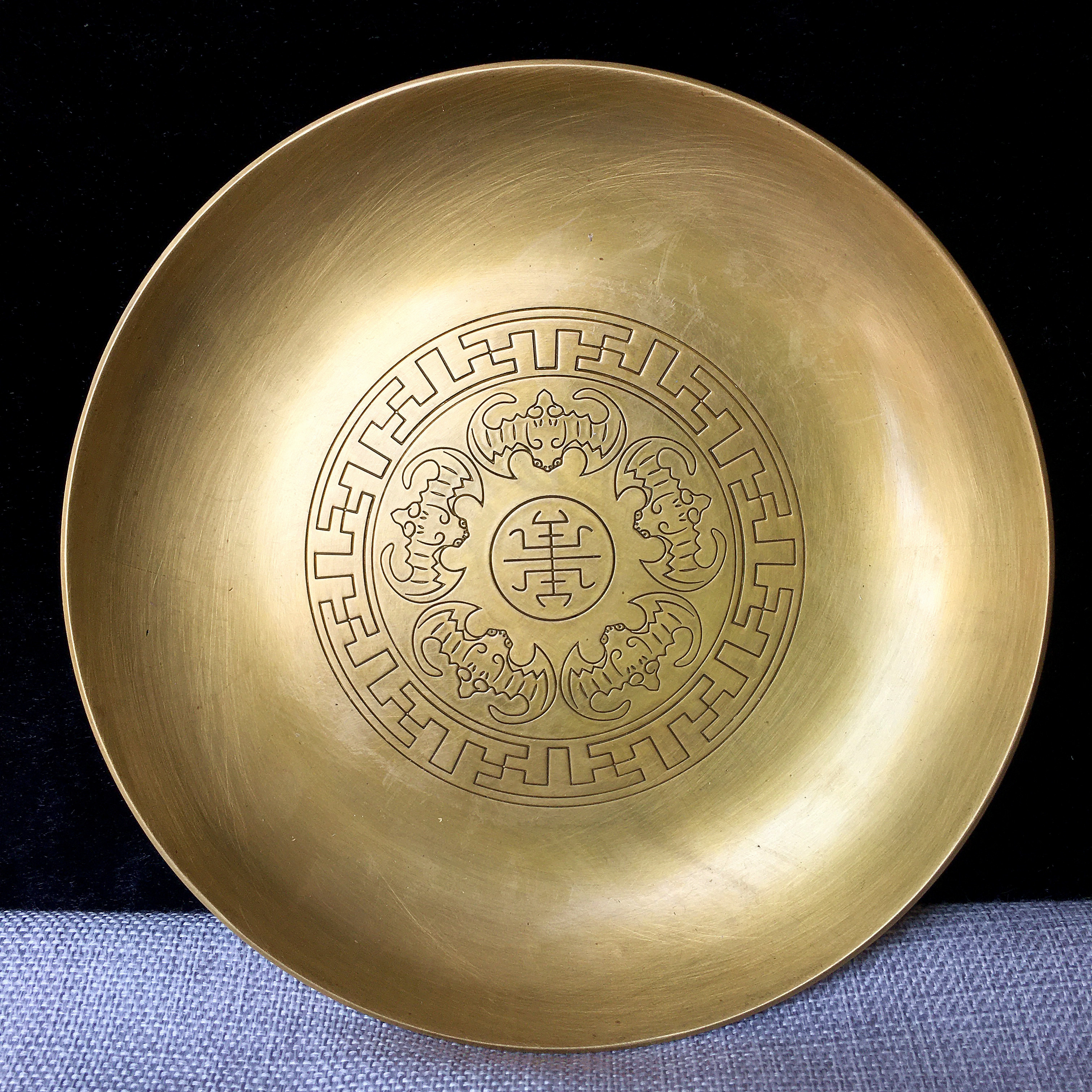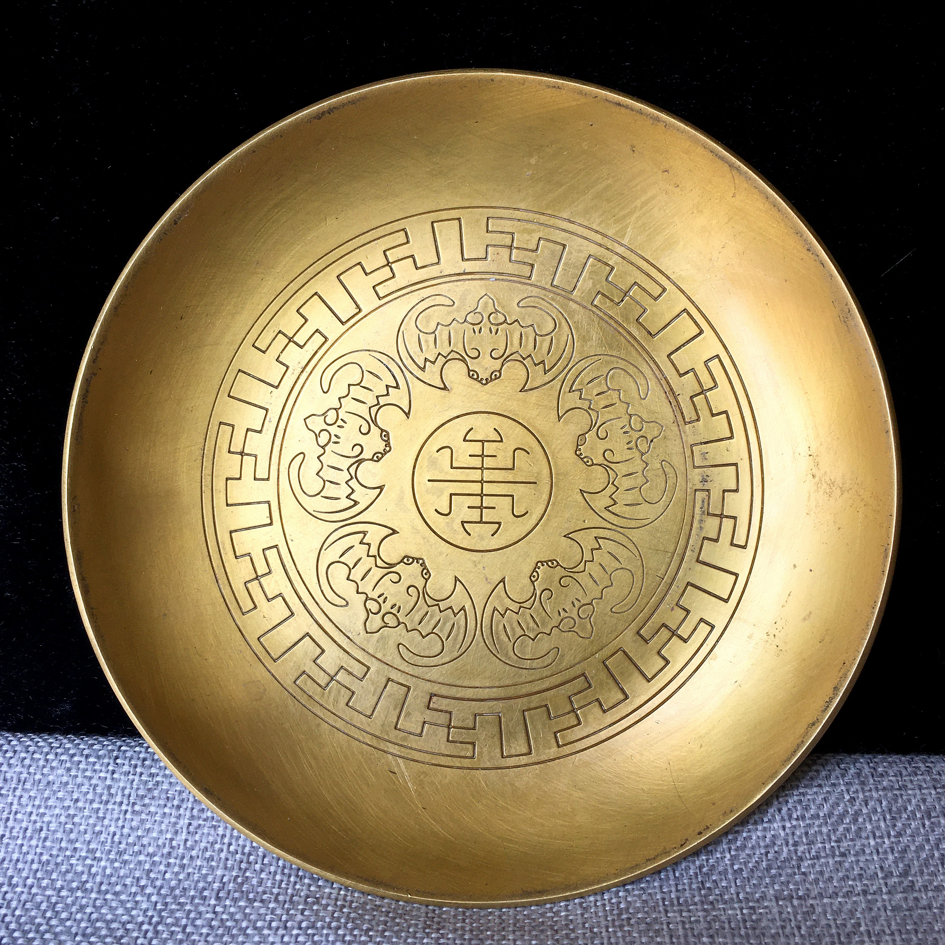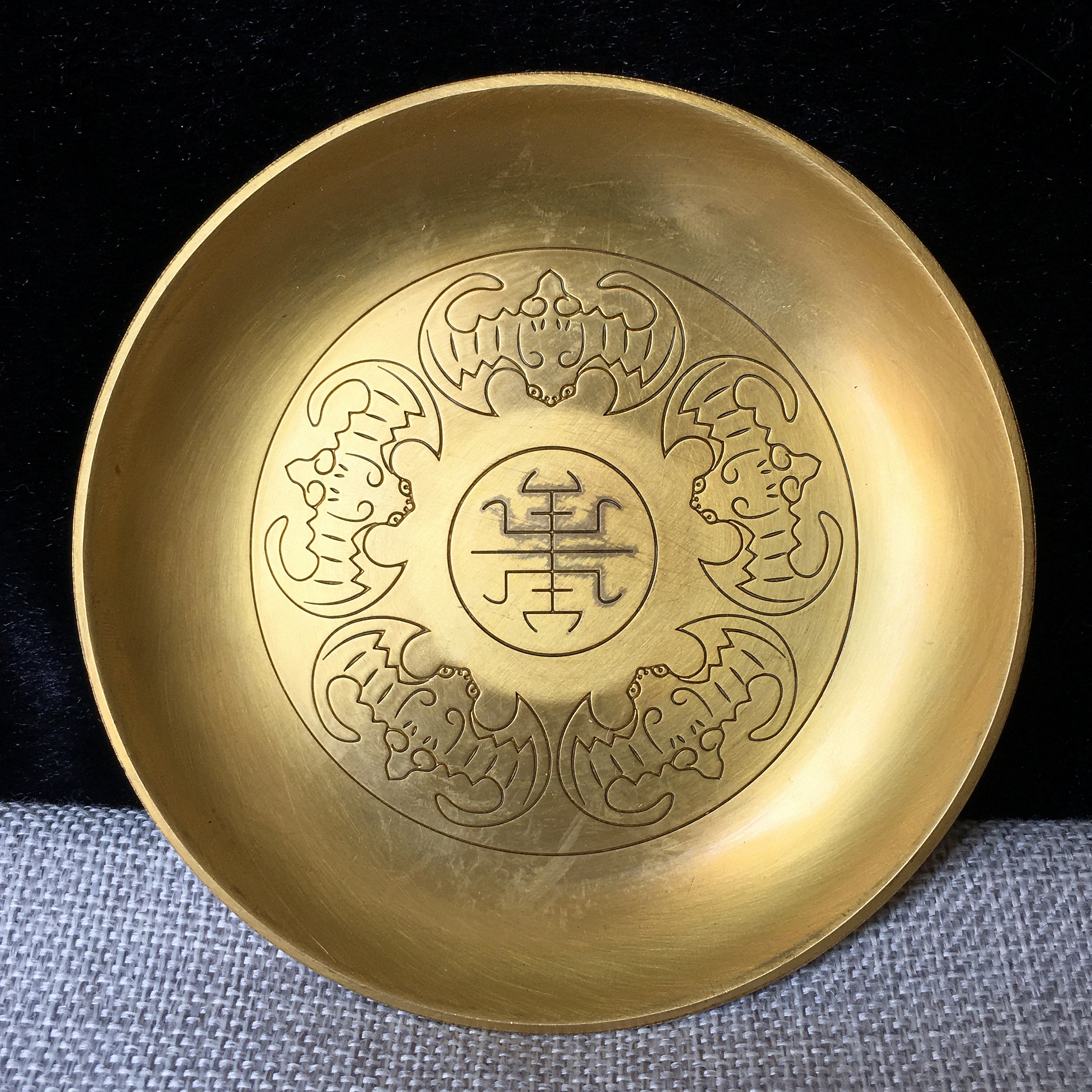 Wufu Tongshou Copper Plate Copper Plate Ornament Household Buddha Pure Copper Old-fashioned Brass Plate Large, Medium and Small Tea Tray Antique