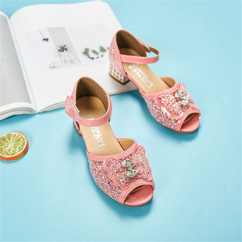 2020 Latin Dance Shoes Soft Bottom Low Heel Dancing Shoes Crystal Girl Princess Leather Shoes Students Performance Shoes Summer Sandals