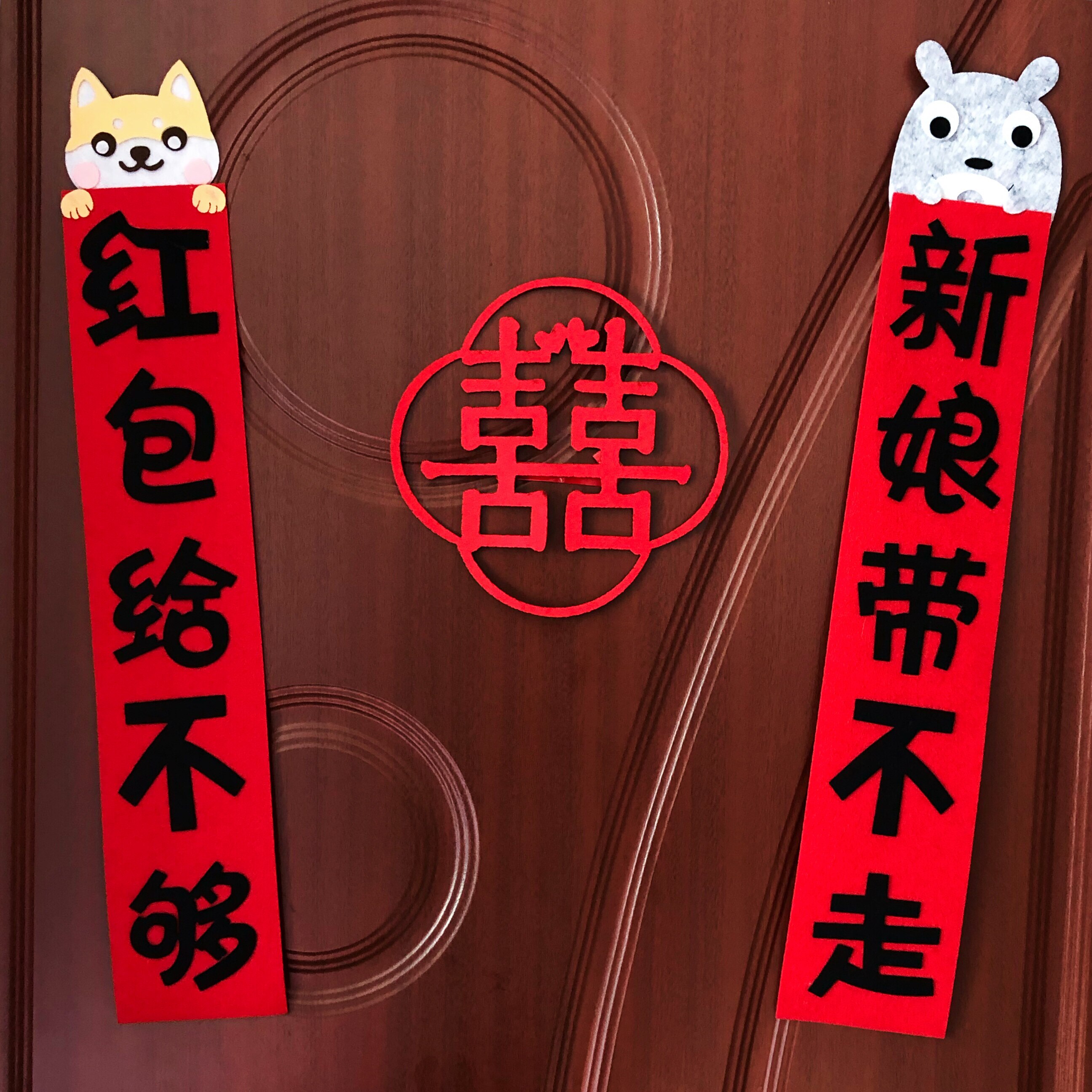 Jammen couplets creative text non-woven fabric couplets to greet pro-props for pranks with wedding props wedding-Taobao