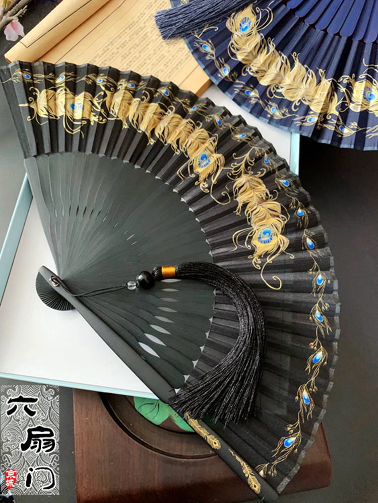 Chinese style 7 inch folding fan classical retro - style peacock feather hot male and feather handgown portable dance fan