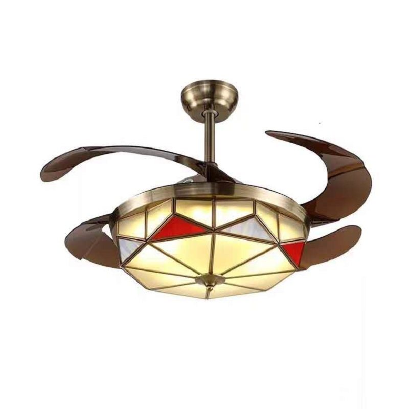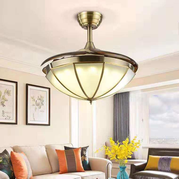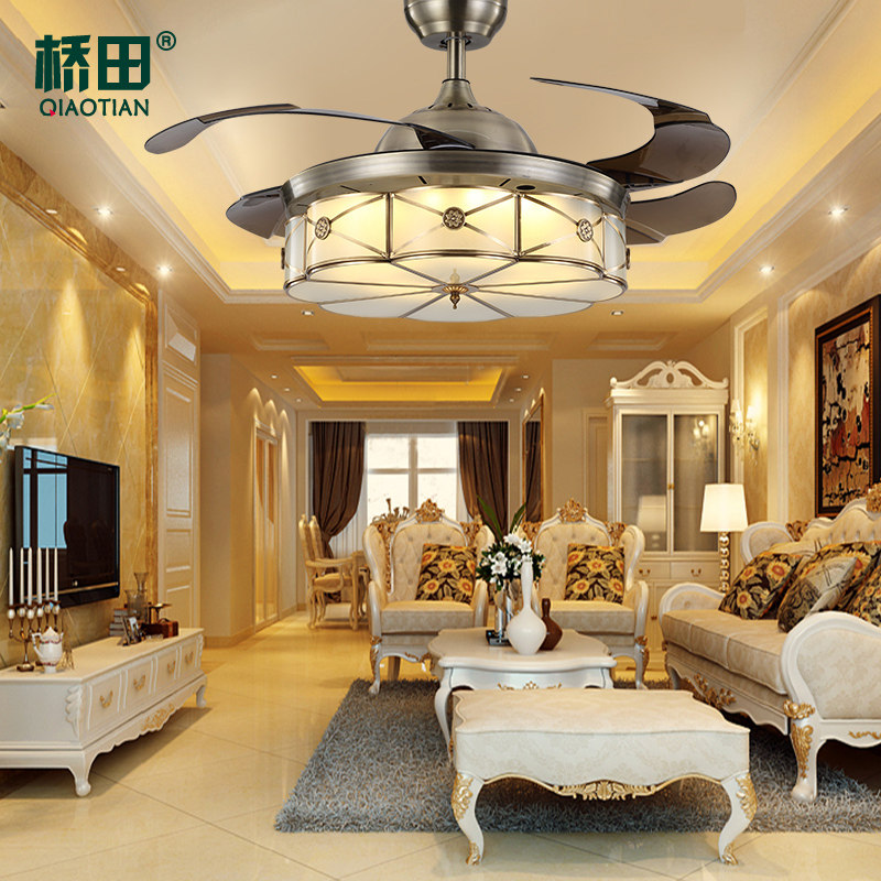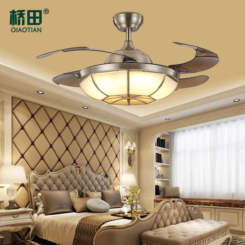 Hashida invisible Chinese American frequency conversion ceiling fan light package installation restaurant bedroom living room full copper art voice fan light