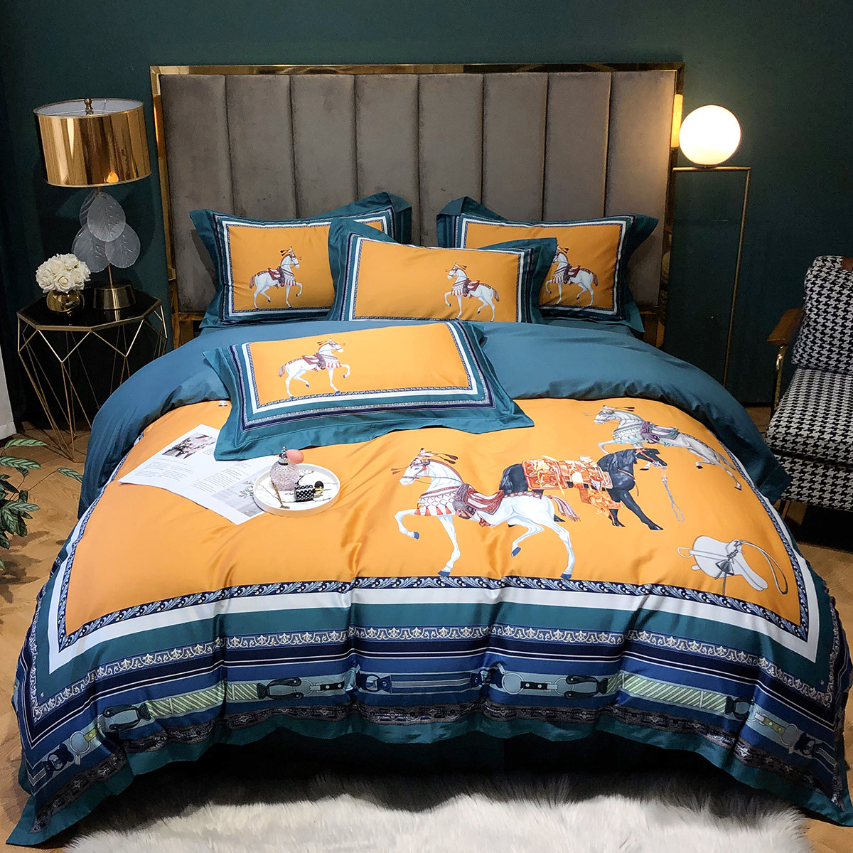 Eurostyle upscale 100s long suede cotton four pieces digital printed pure cotton gon satin quilt cover 1 8m bedding