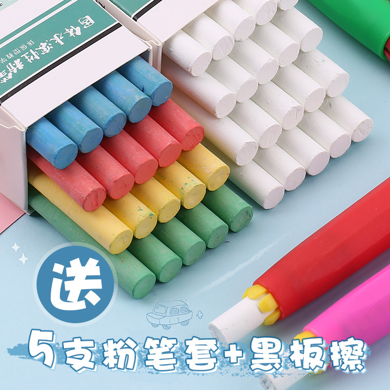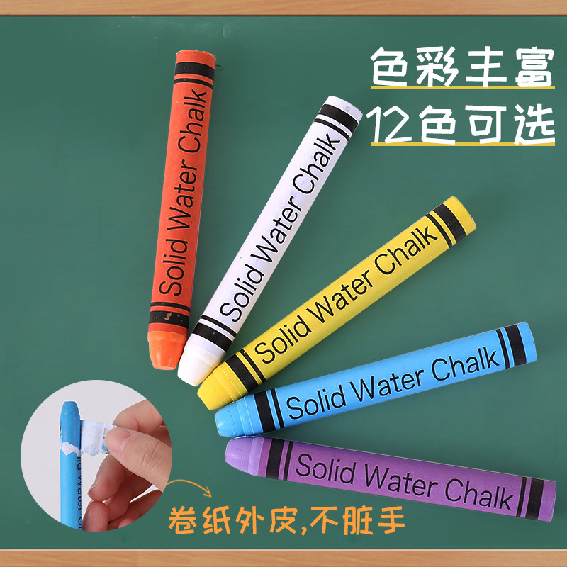 Solid water soluble dust-free chalk white dust-free chalk children home without dirty hand baby graffiti pen bright drawing large chalk sleeve teacher special 12 color blackboard teaching color chalk