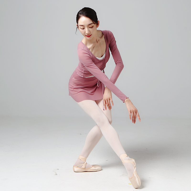 All love dance court Dance yarn dress Mesh dance blouse V-neck short ballet practice suit Body coat top