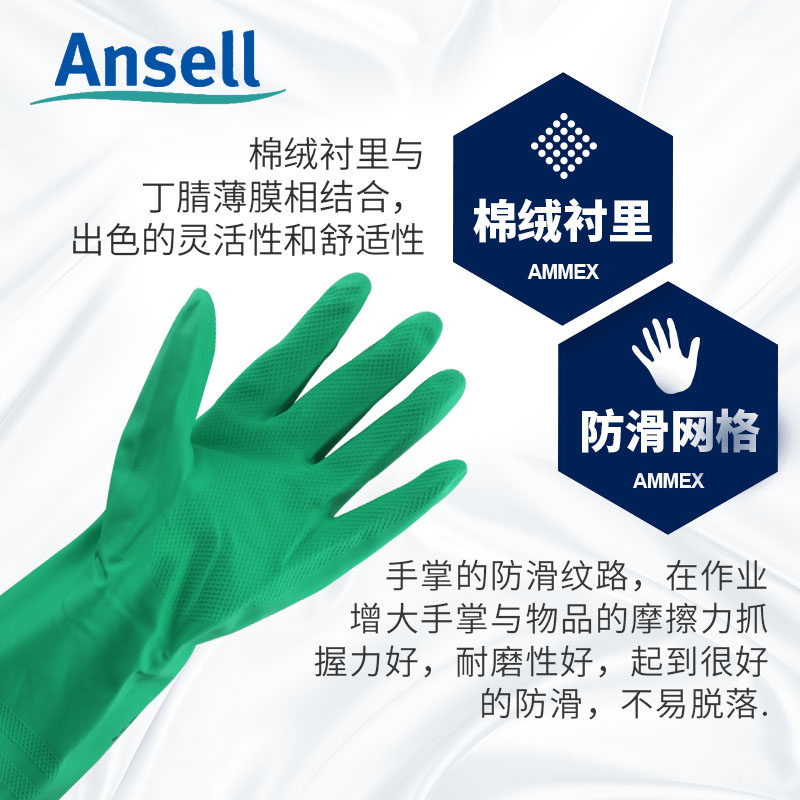 Ansell 37-176 acid-base anti-chemical corrosion gloves industrial laboratory rubber thickened oil-resistant