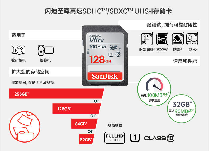 SanDisk SD card 128G100M suitable for Canon Nikon SLR camera storage micro-single digital camera memory card