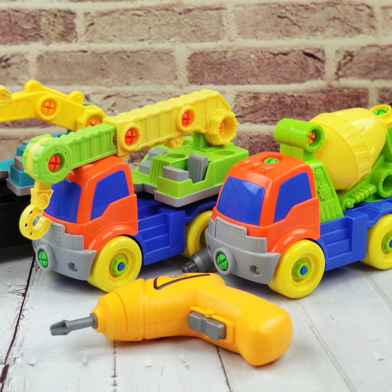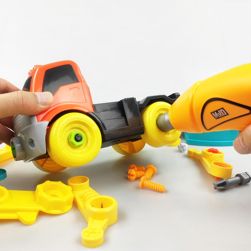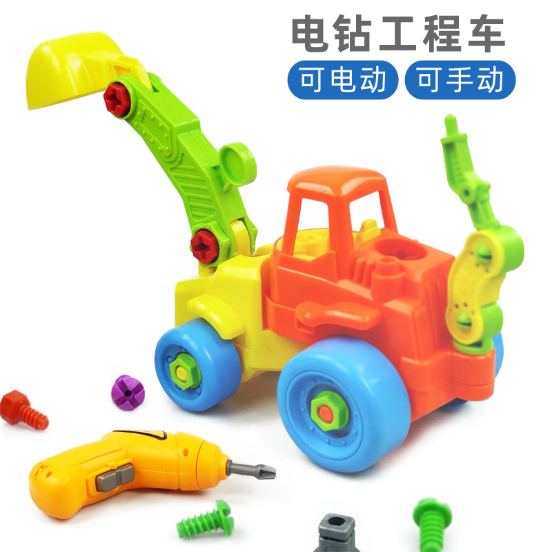 The excavator (increased) the crane (increased) the mixer truck (increased) the fire truck (the larger) the excavator (large) the jeep (the larger) the excavator (increased) the electric drill suit the crane (increase) the electric car