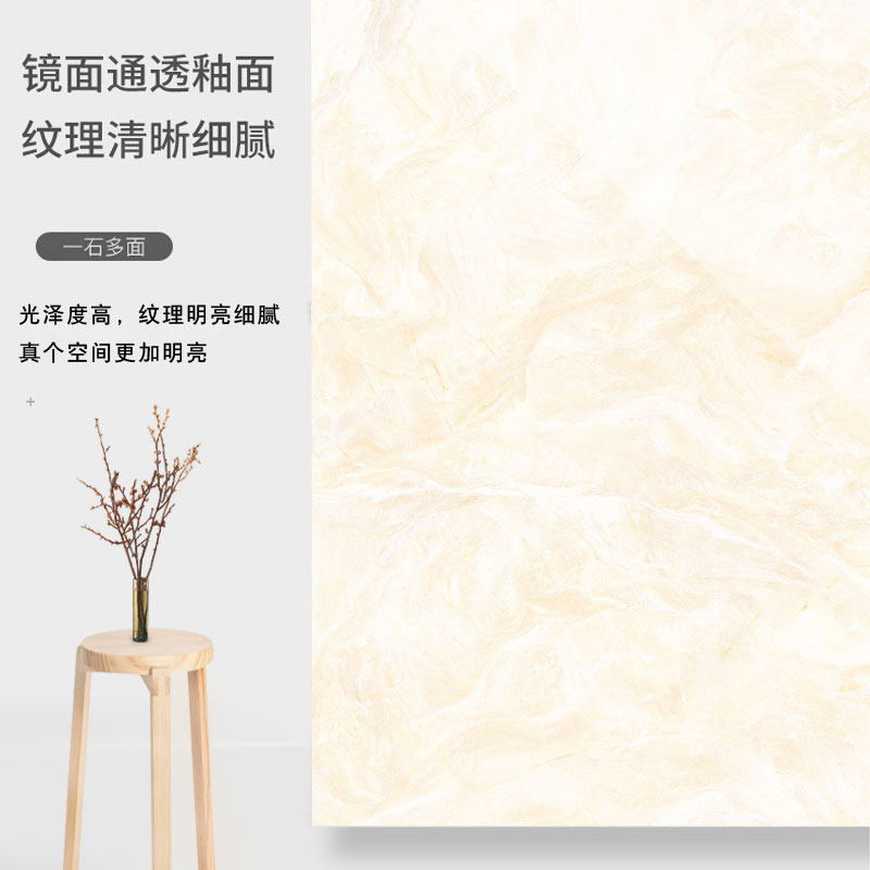 Living room 800X800 floor tiles Foshan Baili yellow bright glossy ceramic tile modern light luxury body non-slip wear-resistant brick