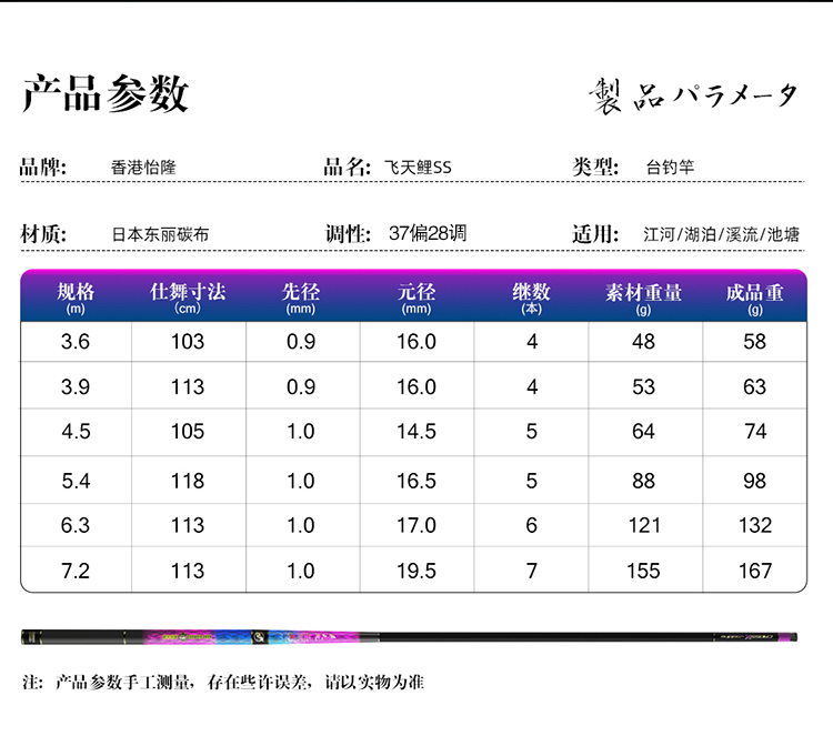 Hong Kong Yilong flying carp 2S SS ultra-light ultra-hard table fishing rod high-carbon crucian carp rod hand rod carp rod black pit rod