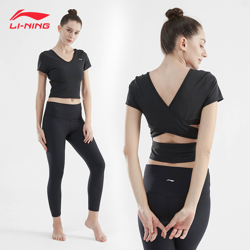 Li Ning running sports suit yoga women's speed dry suit women's yoga clothes summer thin net red morning running sportswear