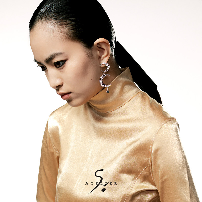 AtelierSo Official Mandate Chaste Twin Moon Earrings Texture Texture Original Design Personality Earrings