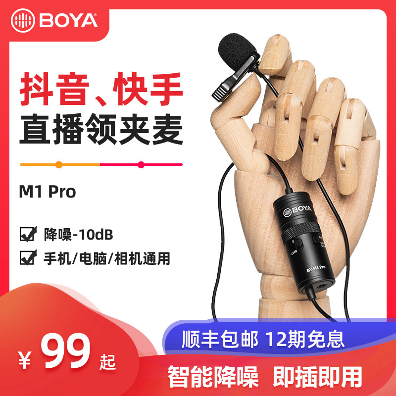 BOYA boya collar clip microphone vlog mobile phone single eye camera live eats M1 PRO small honeybee microphone capacitive thoracic and mural sound-noise coverage microphone professional recording device