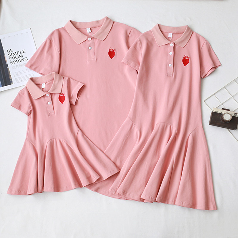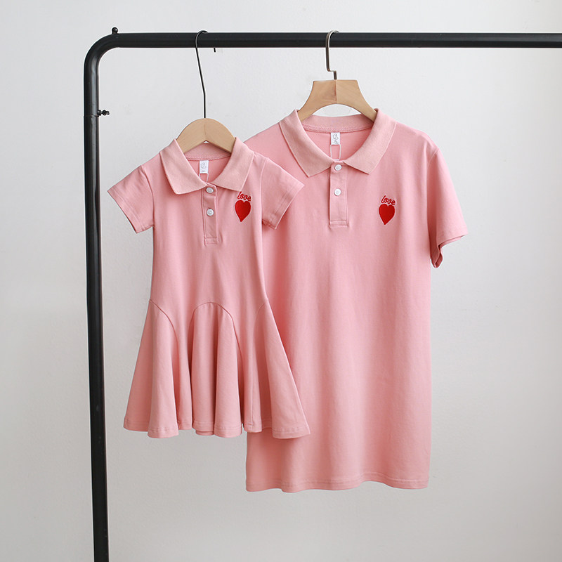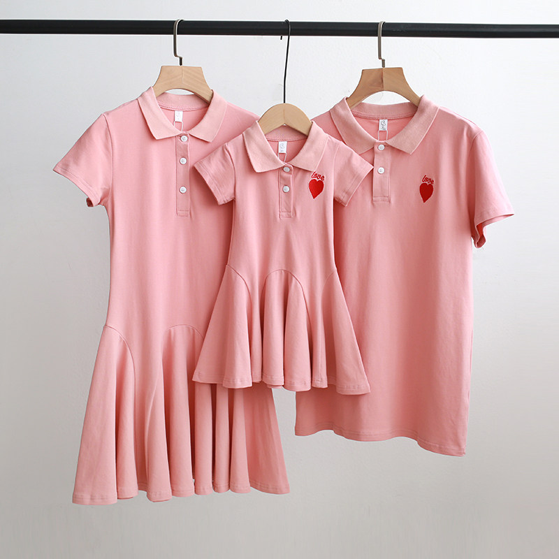 Pro Daughter Dress Mother Dress Summer Dress 2022 New Tide Family Of Three Quad Mother-son Short Sleeve Polo Shirt Dress