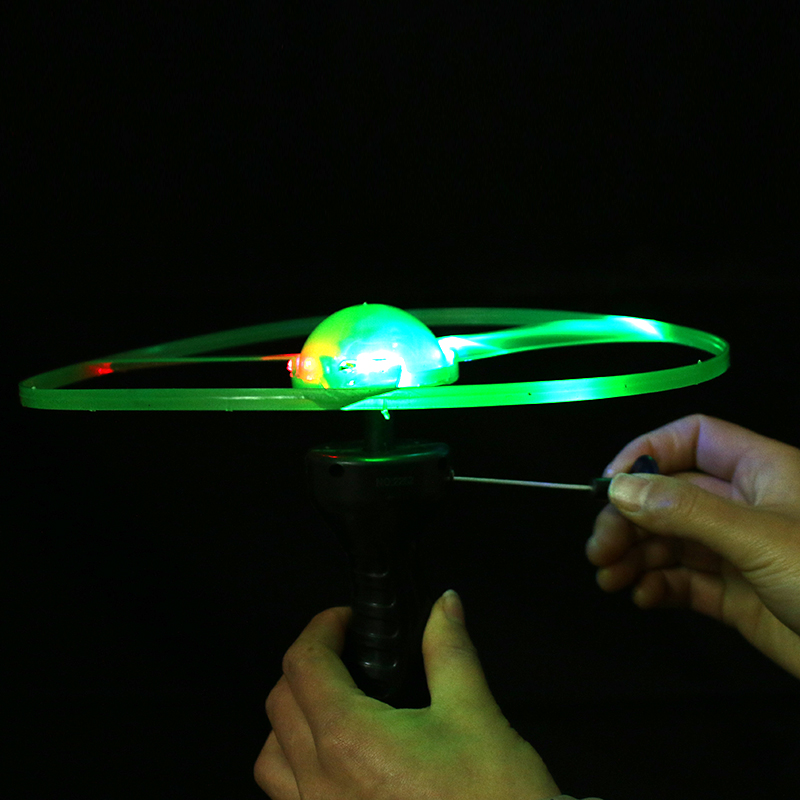 Pull Wire Flying Saucer Creative Children's Toy Square Stock Source Yiwu Small Toy Ground Shine Night Market Flash Flying Saucer