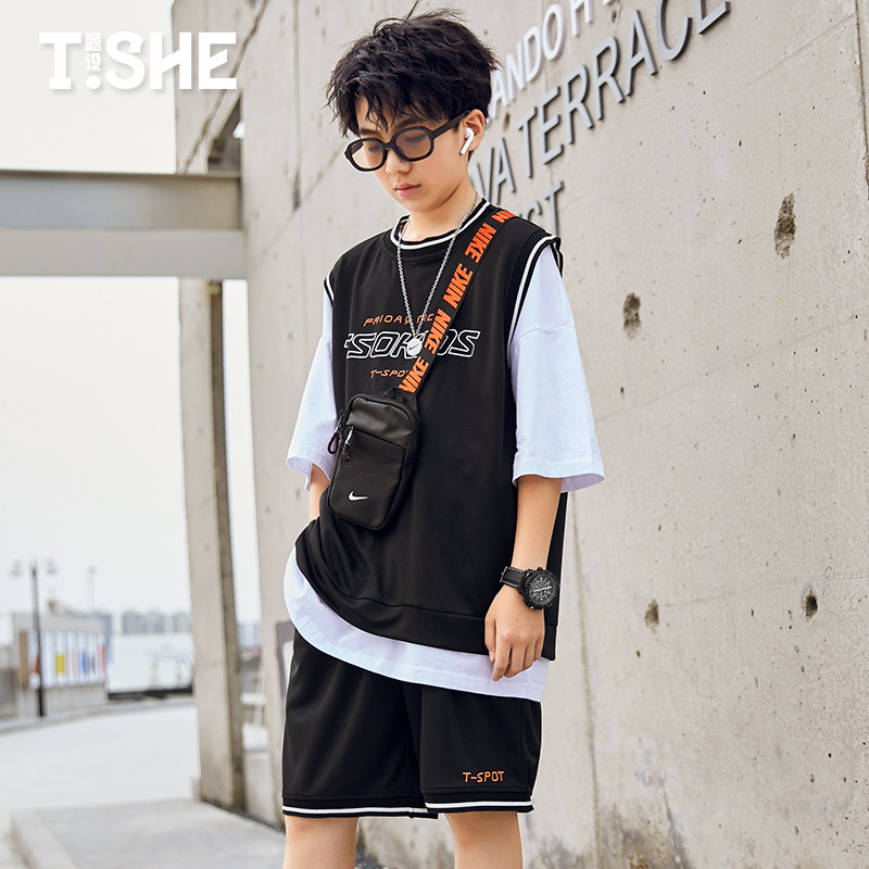 Children CUHK boys basketball speed dry suit Loose Fat Boy Summer Clothing Sleeveless Boy Sportswear Hip Hop Thin