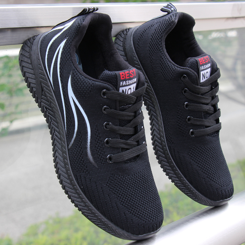 Men's shoes mesh breathable sports shoes casual shoes soft sole non-slip wear-resistant shoes all black autumn work shoes running shoes