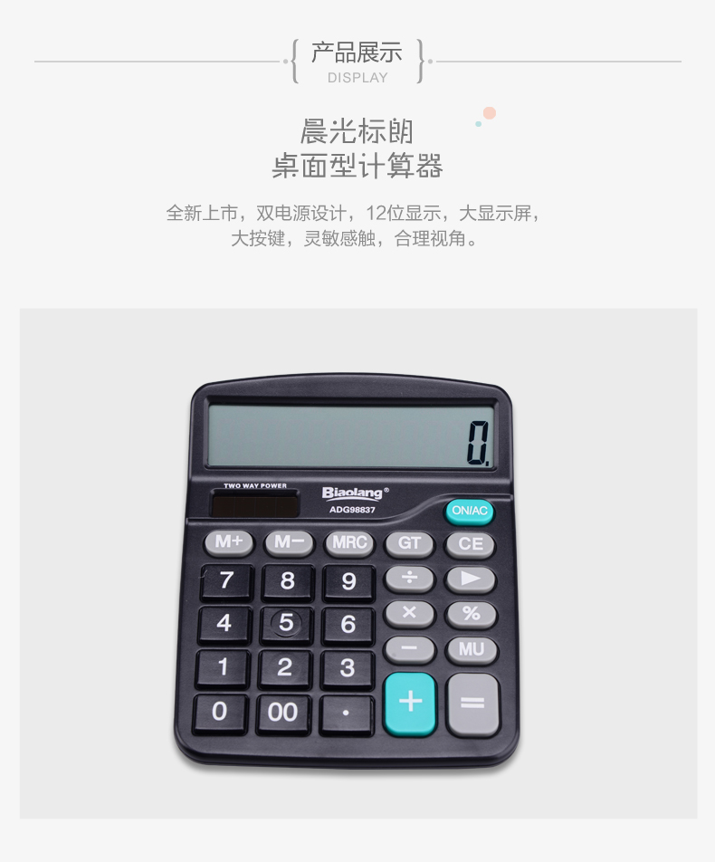 Morning light calculator Office financial accounting special 12-digit large button screen cute student exam university computer Solar computer 98837
