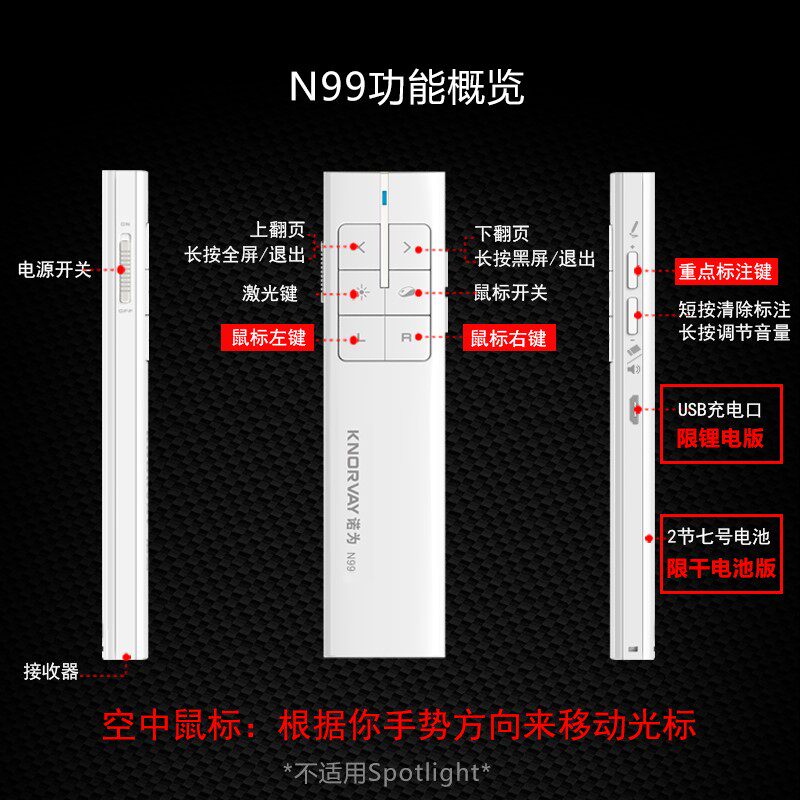 Nino for N99A ppt page-turning pen teacher with air flying squirrel remote control laser projector electronic whip