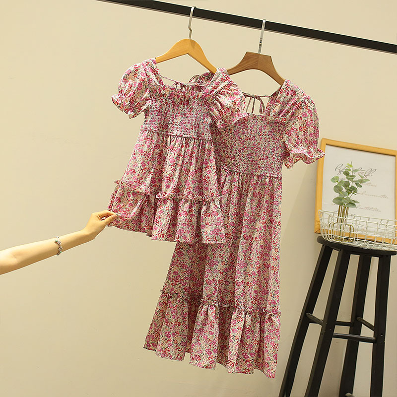 La Chapelle children's clothes girls summer dress net red foreign pie puffy sleeves dress children's princess skirt parent-child dress parent-child dress