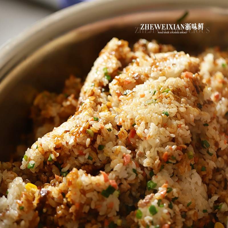 Glyu rice corn onion mushroom sausage meat filament flour salted egg yolk water salt taste brewing soy sauce