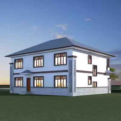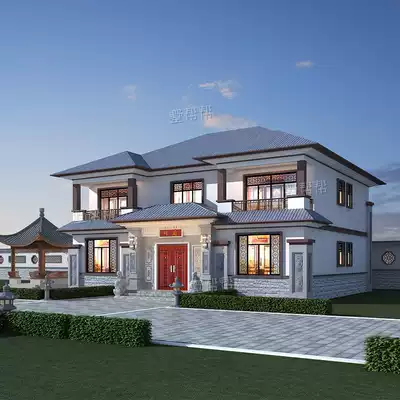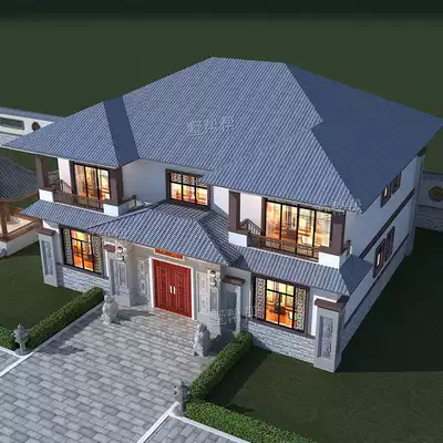 Rural self-built house villa design drawings two-story new Chinese style full set of renderings full construction guidance