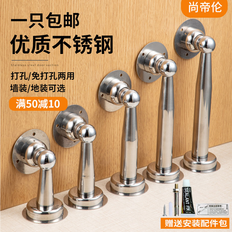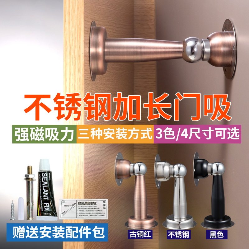 Stainless steel door suction-free punching household strong magnetic anti-collision ultra-long wall suction bathroom room door lengthened super suction