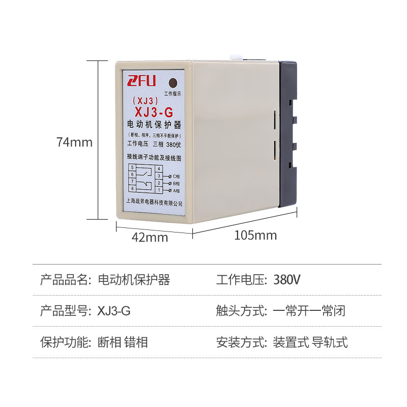 Phase break and phase sequence protection relay XJ3-G AC380V 1 open 1 closed phase three-phase unbalanced