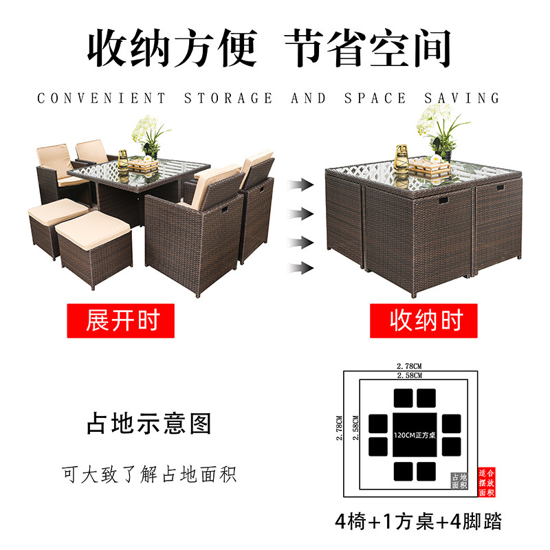 Outdoor table and chair combination rattan chair leisure yard rattan tea table outdoor waterproof sunscreen courtyard garden outdoor terrace