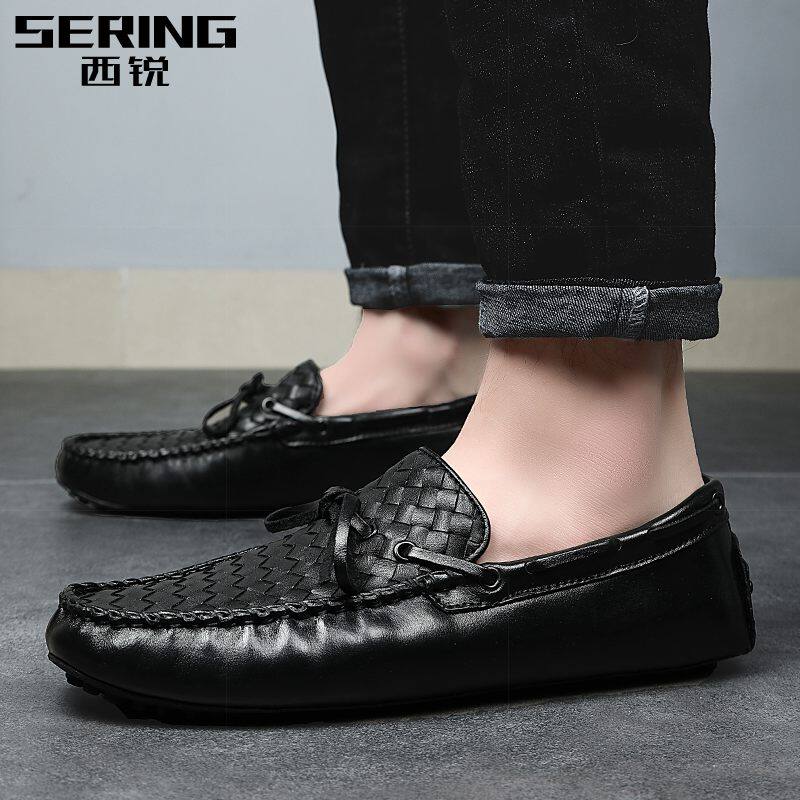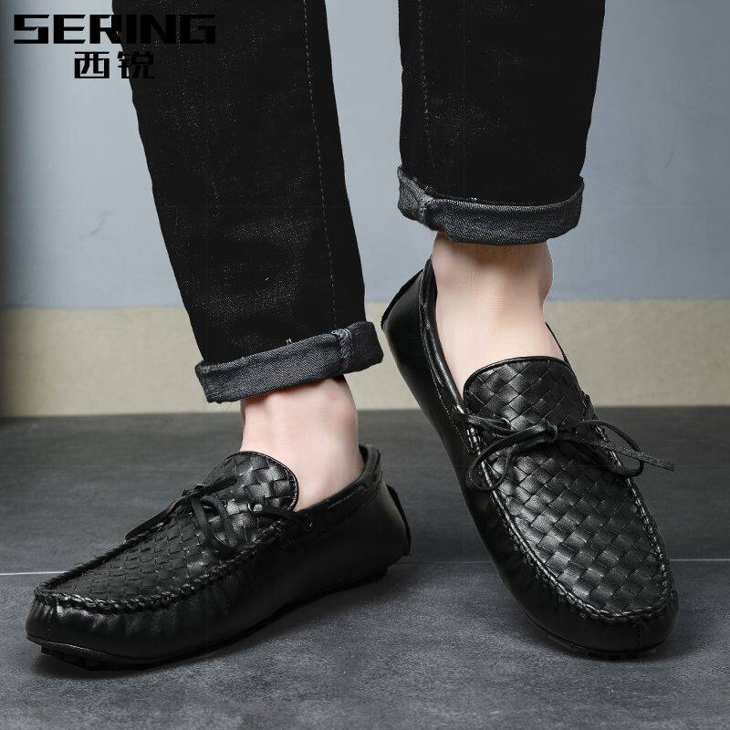 West Sharp 2021 New Bean-Bean Shoes Men Genuine Leather Breathable Fall Casual Leather Shoes Imitation Braiding Sloth Shoes